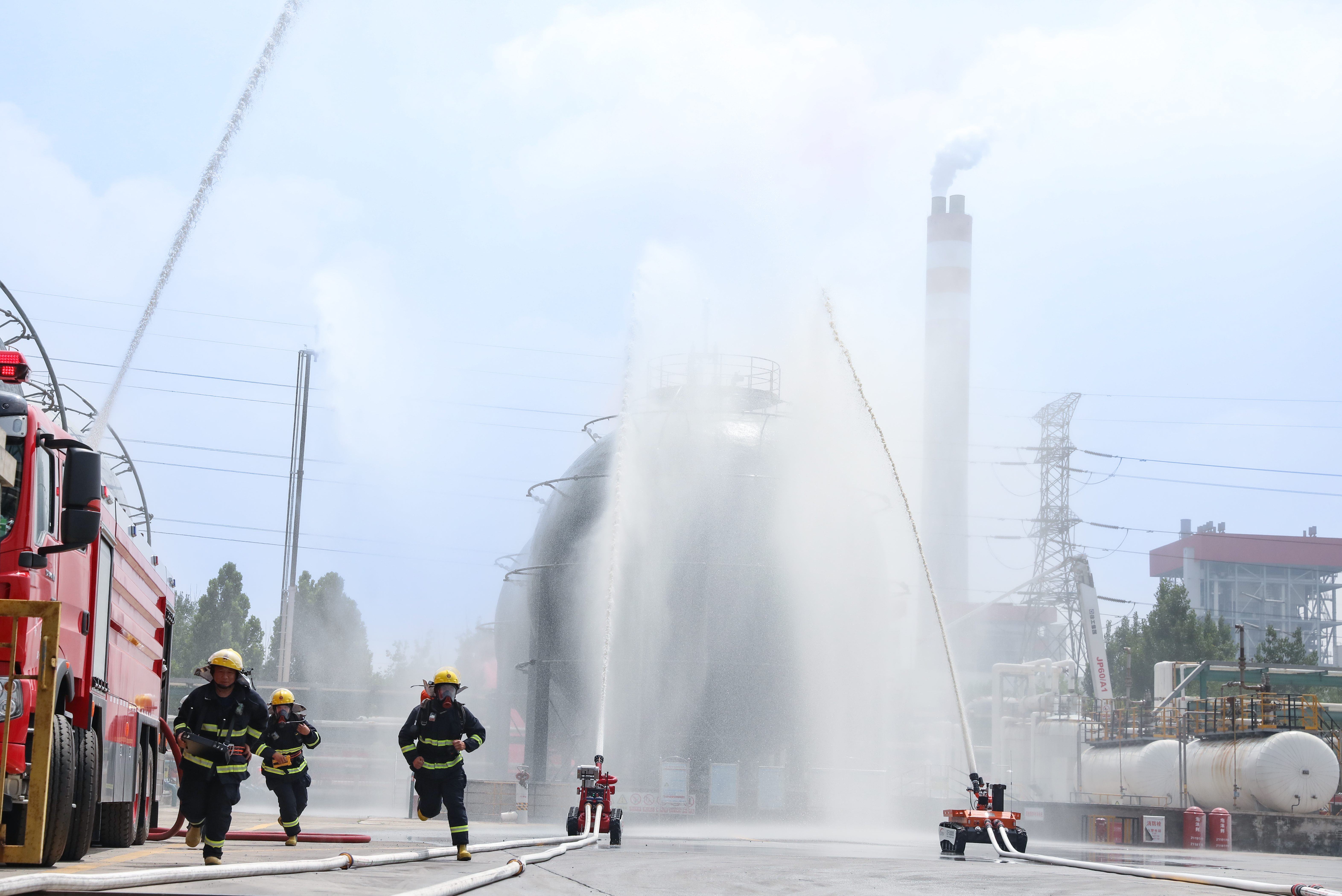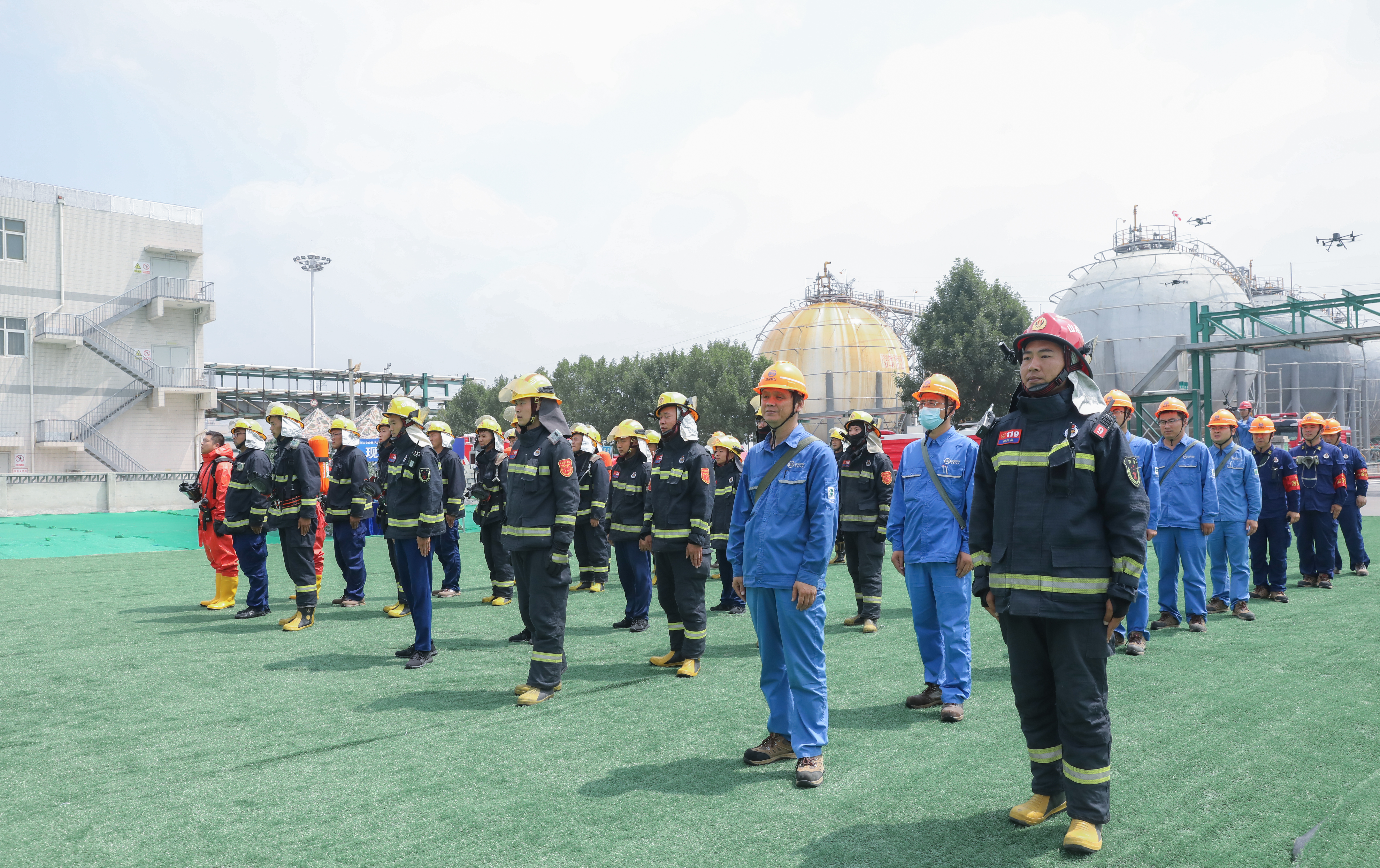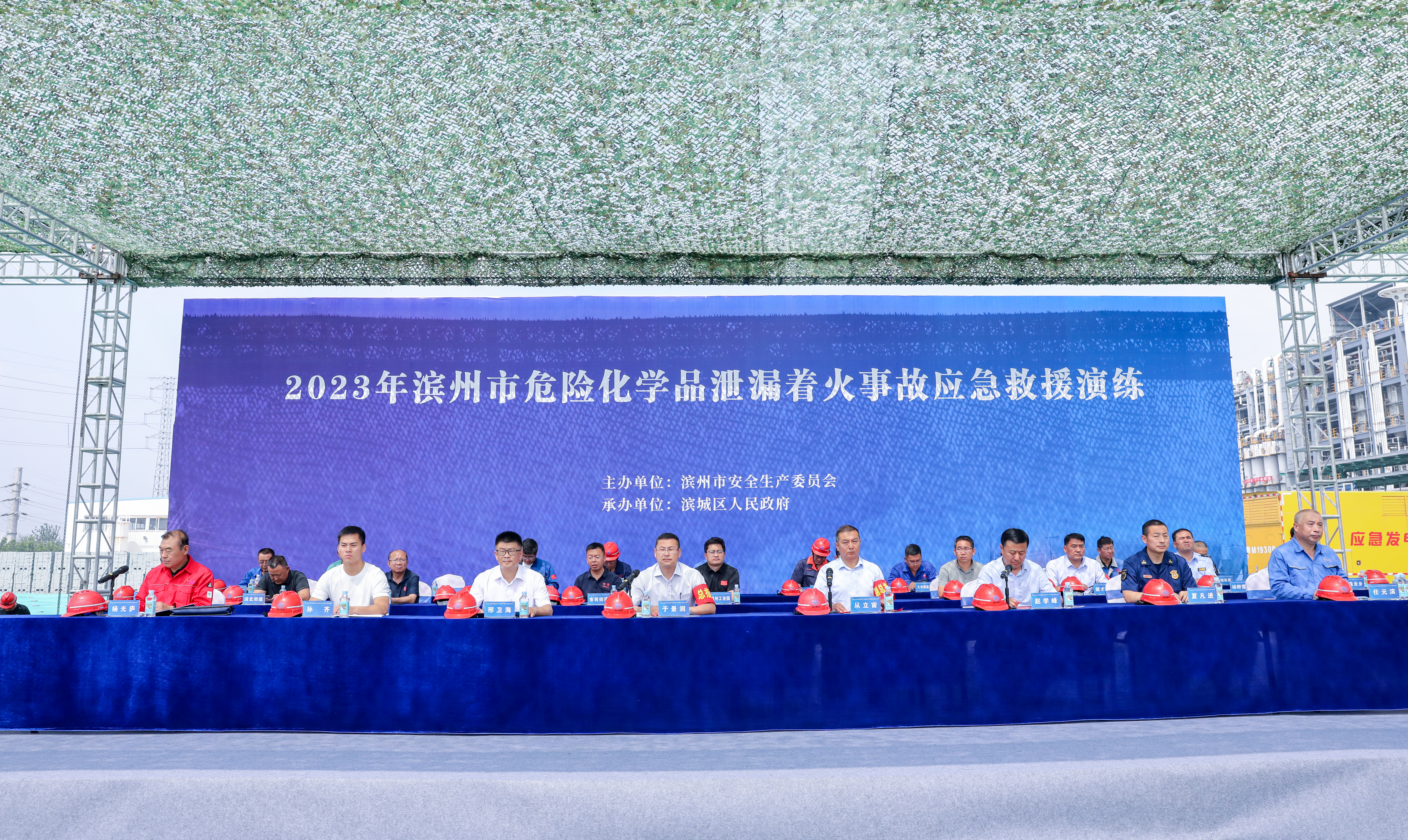6月20日上午,2023年濱州市危險(xiǎn)化學(xué)品泄漏著火事故應(yīng)急救援演練在濱化集團(tuán)濱城基地舉行。本次演練內(nèi)容為“模擬丙烯運(yùn)輸車輛爆炸引發(fā)罐區(qū)氯丙烯球罐爆炸燃燒事故應(yīng)急救援”,應(yīng)急、公安、交警、濱化集團(tuán)等單位共200余名人員參與。