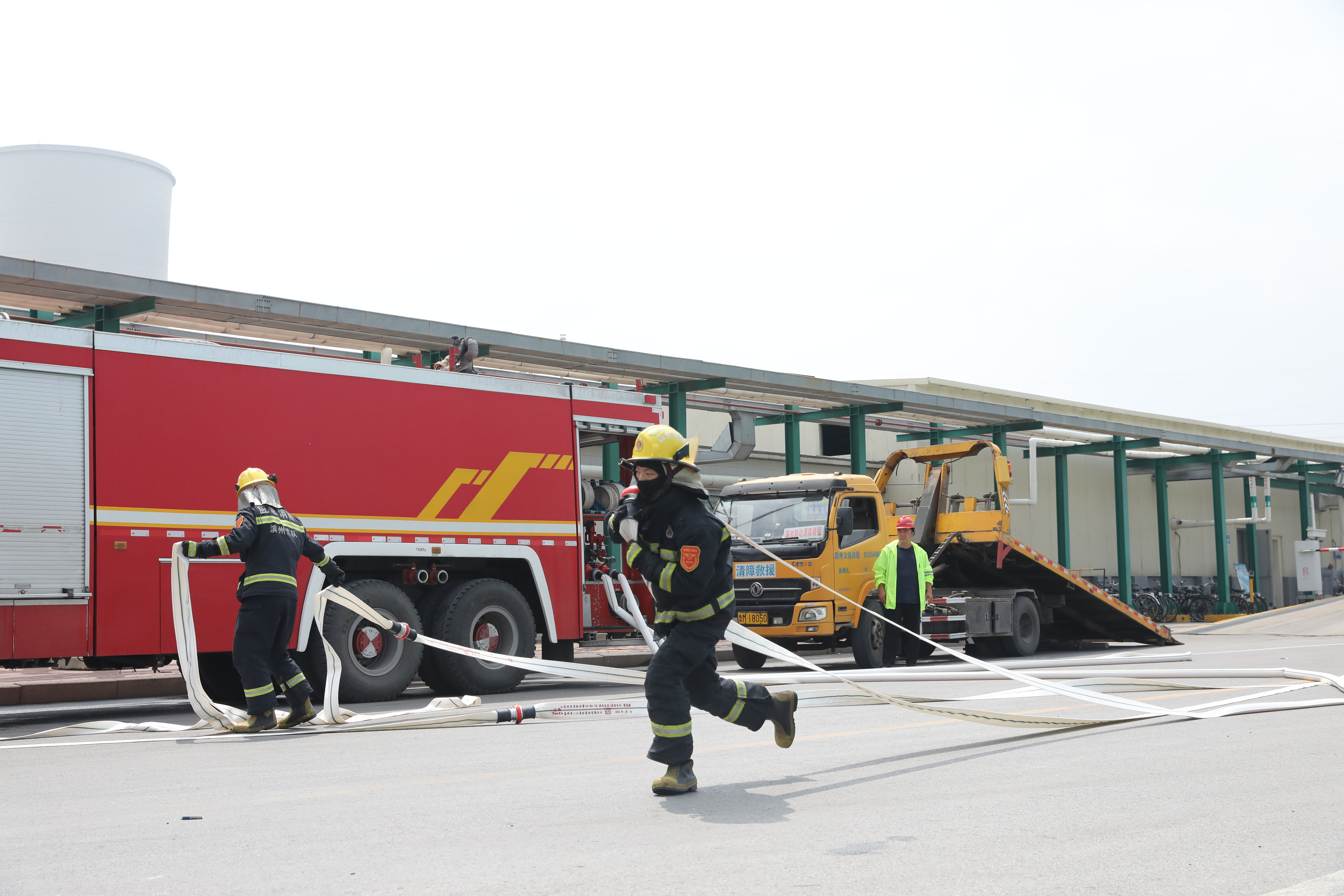 10時(shí)20分,報(bào)警器啟動,“事故現(xiàn)場”濃煙滾滾,100余名救援人員、20余臺救援車輛緊急集結(jié),快速出擊。