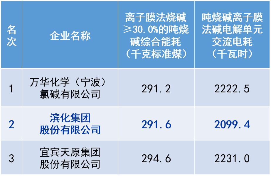 2019年度石油和化工行業(yè)重點耗能產品能效“領跑者”標桿企業(yè)名單和指標于9月4日正式隆重發(fā)布,濱化離子膜燒堿單位產品綜合能耗以291.6kg標煤/噸的成績,再獲2019年全國重點耗能產品“領跑者”標桿企業(yè)稱號,也是我公司繼2014年以來,連續(xù)六年獲得能效“領跑者”標桿企業(yè)。